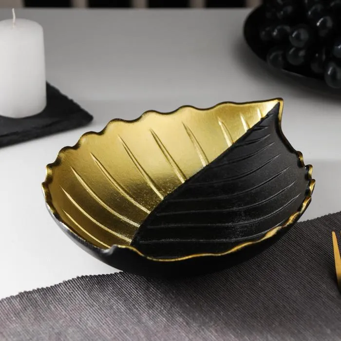 Блюдо для фруктов Доляна «Золотой лист», 23×17×4.5 см, золотистая с чёрным — Характеристики