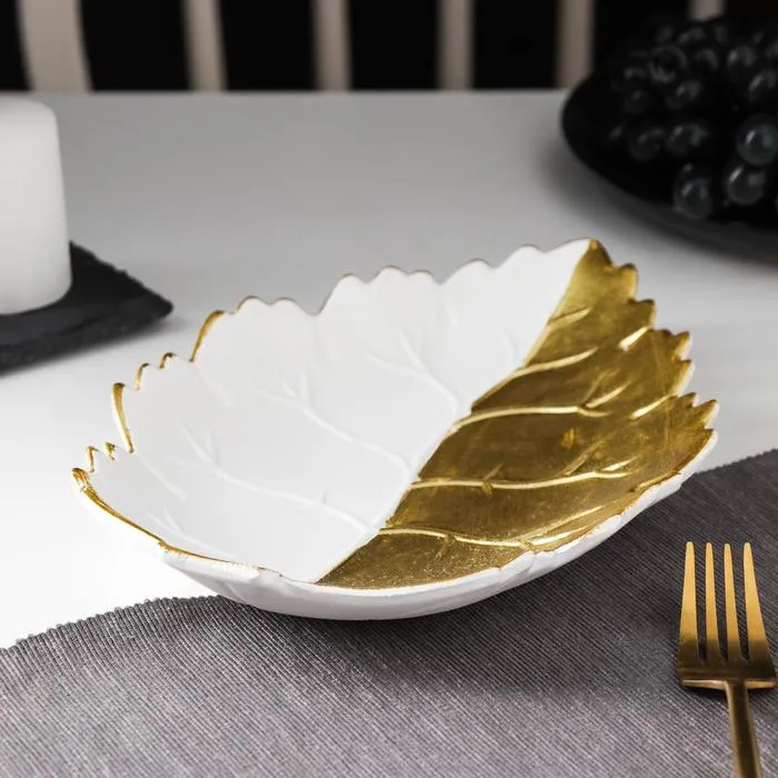 Блюдо для фруктов Доляна «Золотой лист», 25,5×17×3,5 см, цвет золотой с белым — Характеристики