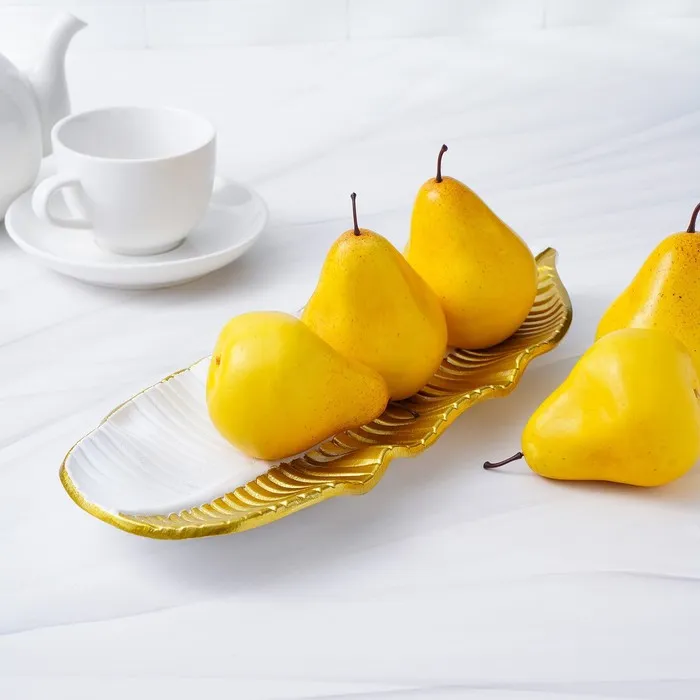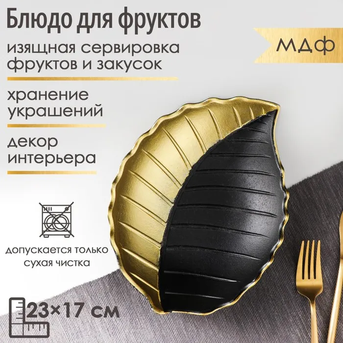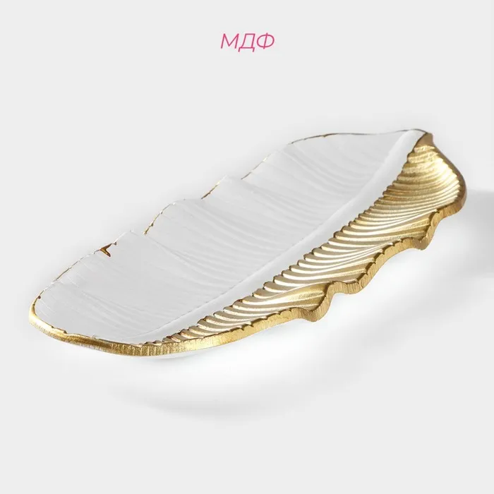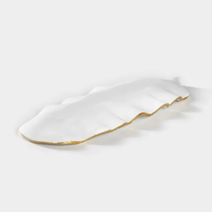 Блюдо для фруктов Доляна «Золотой лист», 36×14×3 см, золотое с белым — Характеристики