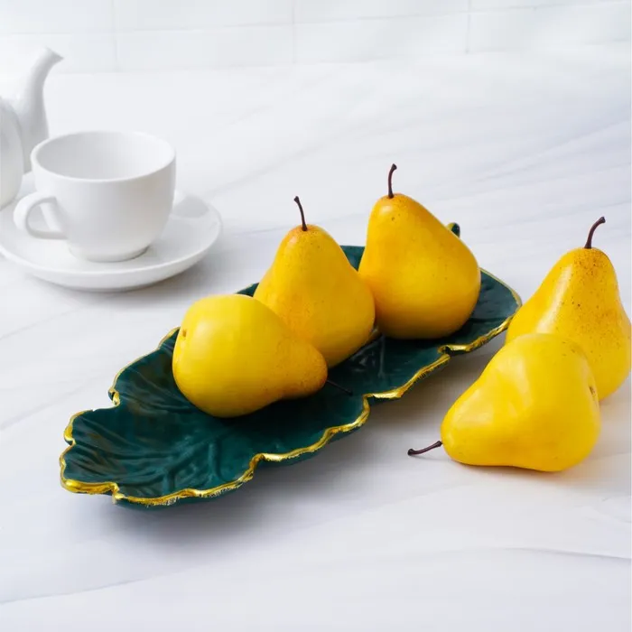 Блюдо для фруктов Доляна «Золотой лист», 37×14 см, зелёное — Характеристики