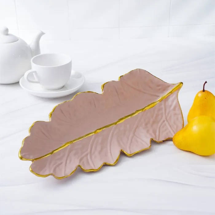 Блюдо для фруктов Доляна «Золотой лист», 38.5×15.5 см, розово-бежевое