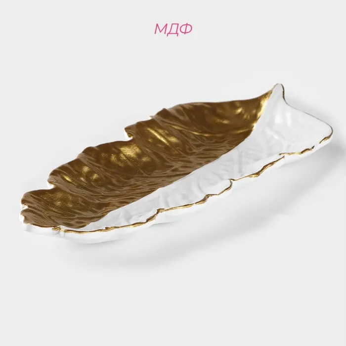 Блюдо для фруктов Доляна «Золотой лист», 38×15.5 см, золотое с белым — Характеристики