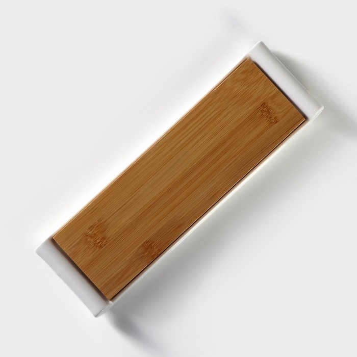 Блюдо для подачи BellaTenero, 29.5×9×2.3 см, с бамбуковой вставкой, фарфор, белое — Характеристики