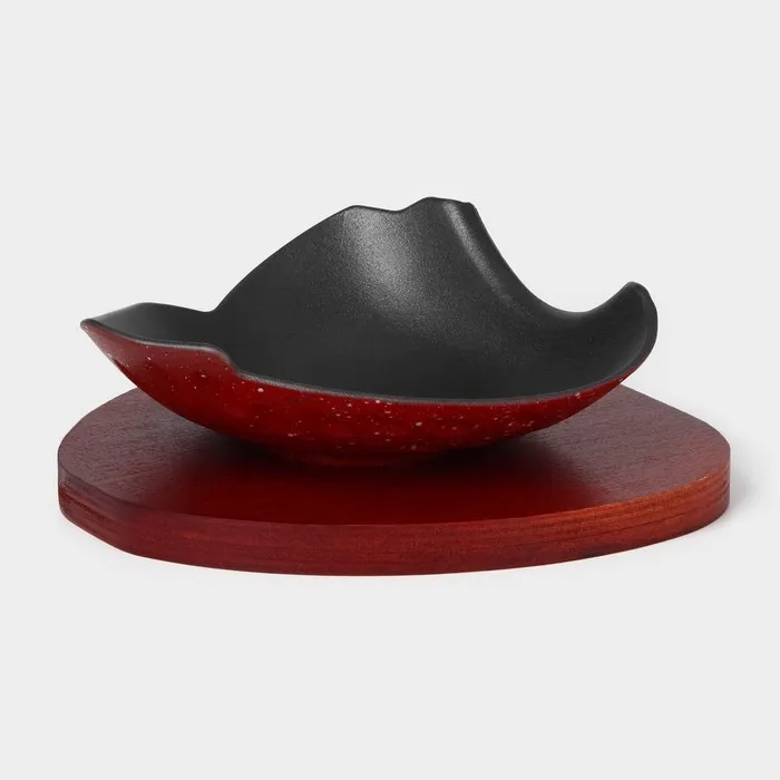 Блюдо для подачи чугунное «Антиквариат», d=20 см, на деревянной подставке, индукция — Характеристики