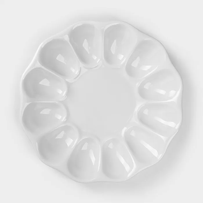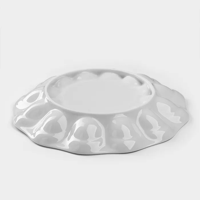 Блюдо для подачи яиц «Белье», d=22 см, на 12 яиц и кулич, фарфор, белое — Характеристики