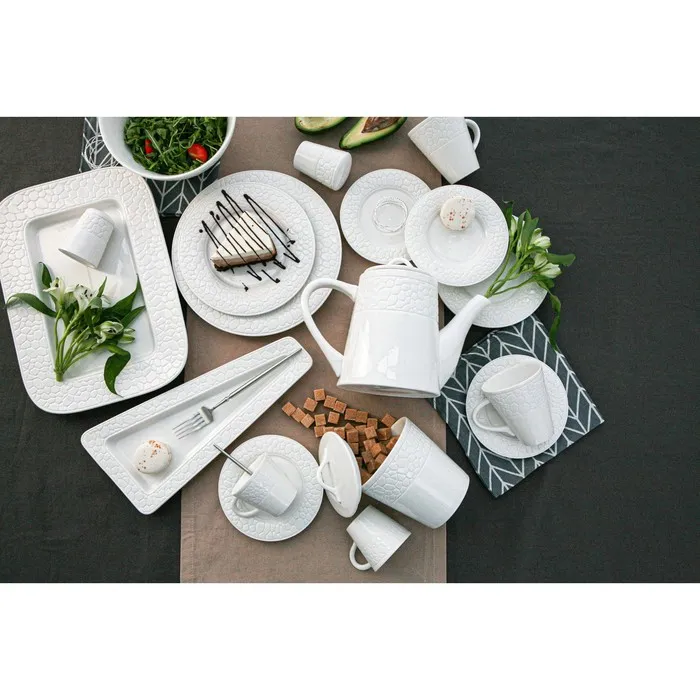 Посуда Magistro серии Rodos – это безупречно изящная коллекция посуды из белоснежного фарфора, достойная украсить даже королевский стол. Традиционная форма изделий остается всегда актуальной и выглядит благородно. Рельефный узор в виде паутины выглядит особенно утонченно и придает посуде индивидуальности. Посуда Magistro Rodos идеально впишется в любой современный интерьер!