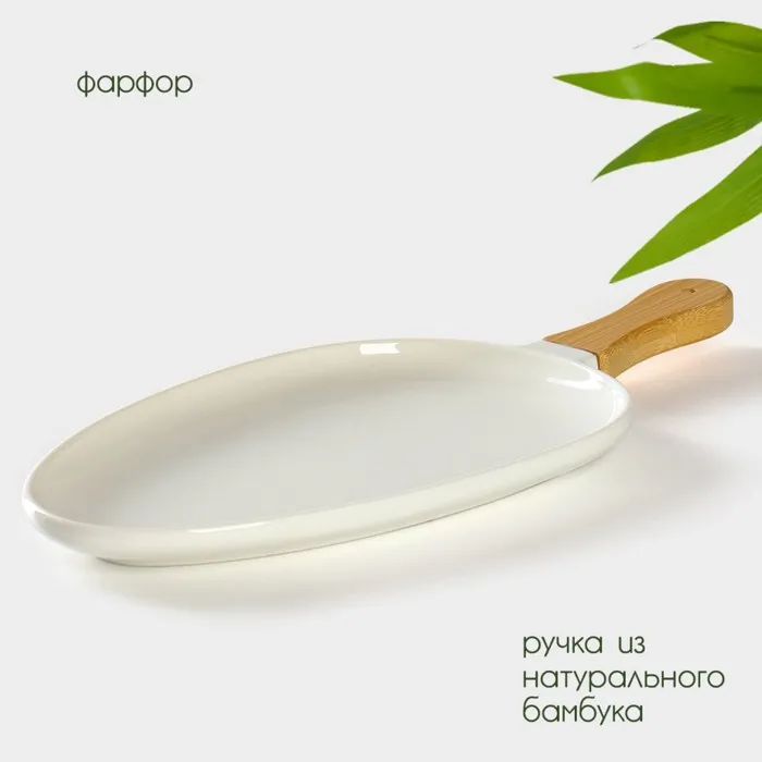 Природная бамбуковая ручка не только добавляет изделию уникальный вид, но и делает его использование удобным и безопасным. Фарфор, из которого выполнено блюдо, отличается высокой прочностью и устойчивостью к царапинам, а также легко очищается, что делает его идеальным для повседневного использования. Блюдо можно мыть в посудомоечной машине, что значительно упрощает уход за ним.