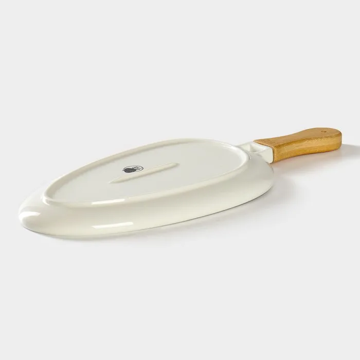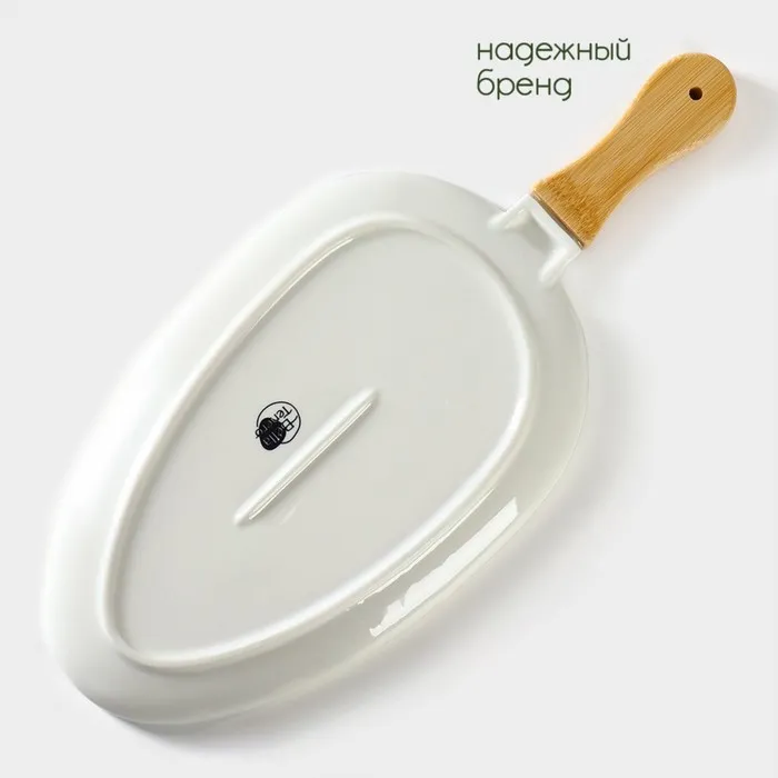 Элегантное блюдо из фарфора с бамбуковой ручкой от BellaTenero — это идеальное сочетание стиля и функциональности для вашей кухни. Белоснежная овальная форма размером 36,5x16x2 см притягивает взгляд и прекрасно подходит для подачи как закусок, так и основных блюд.