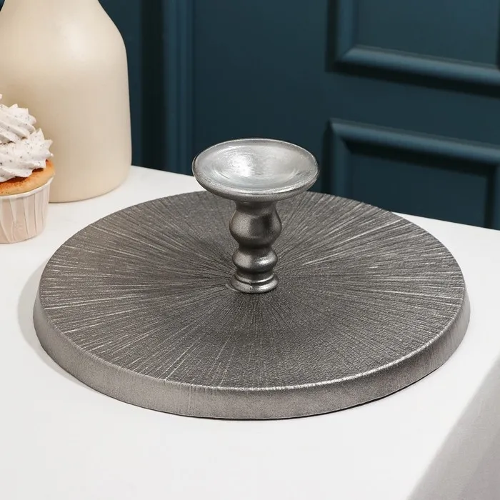 Блюдо для торта «Кувшинка», d=28 см, на ножке, стекло, серебристое — Характеристики