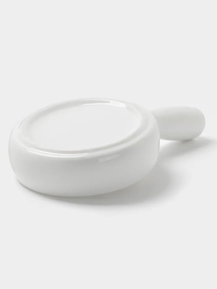 - Удобство в использовании: ручка обеспечивает легкость при переноске и подаче блюда на стол.