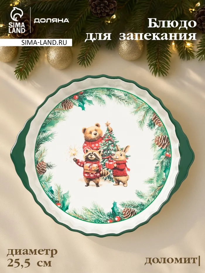 Блюдо для запекания новогоднее Доляна «Сказки зимнего леса», 1.3 л, 28.8×25×4.3 см, доломит, белое — Характеристики