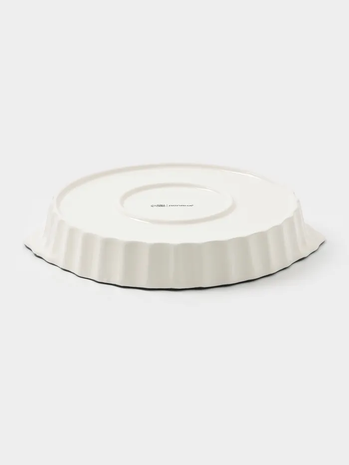 - Форма круглая, с высотой стенки 4,3 см — подходит для высоких рагу, запеканок и слоёных пирогов.