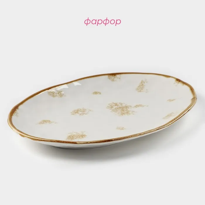 Блюдо Доляна Organic Gold, 30×21×2.5 см, фарфор, белое — Характеристики