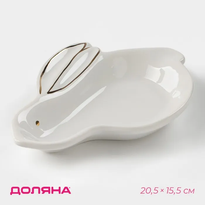 Блюдо Доляна «Зайки в золотом», 21×8×6 см, цвет белый — Характеристики