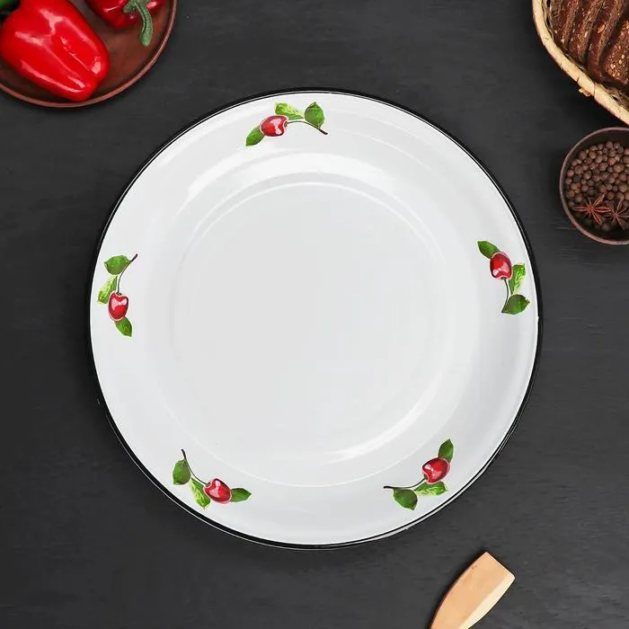 Блюдо эмалированное «Вишневый сад», 4.5 л, d=40 см, цвет белый — Характеристики