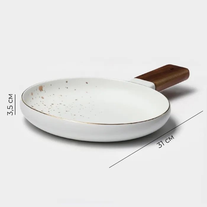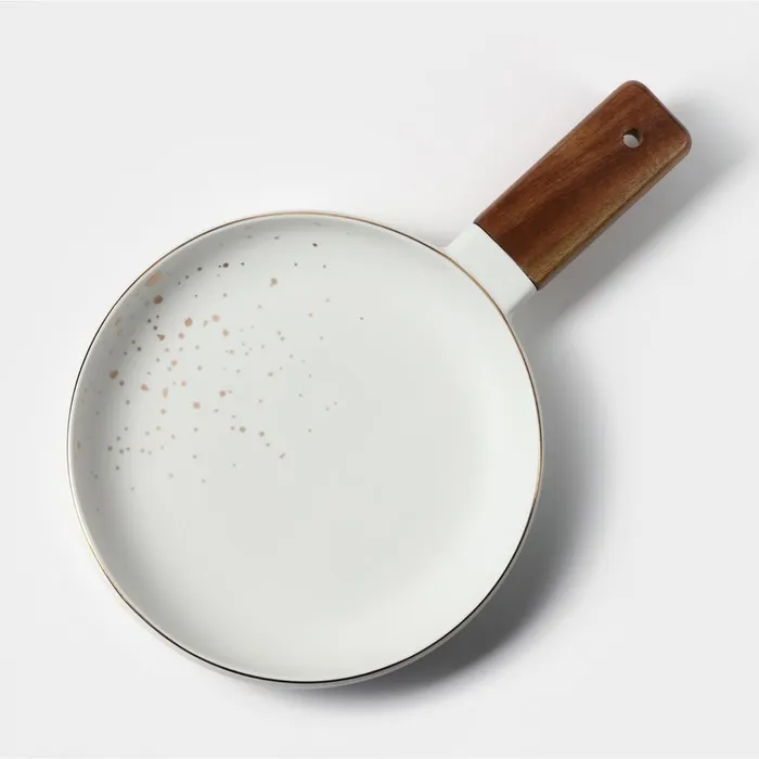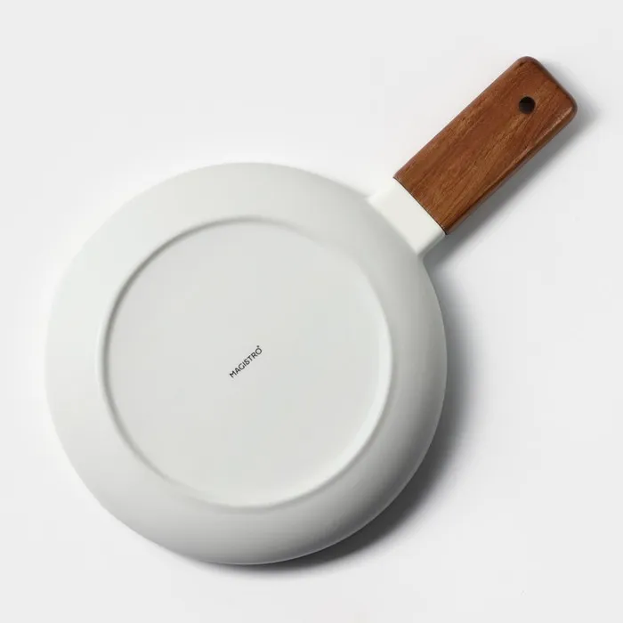Блюдо фарфоровое для подачи с деревянной ручкой Magistro, d=20 см, цвет белый — Характеристики