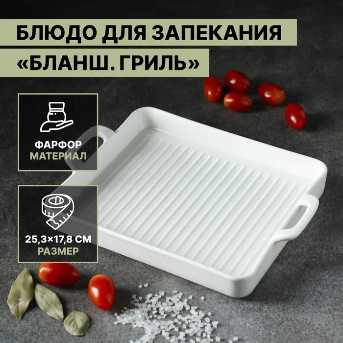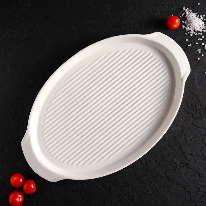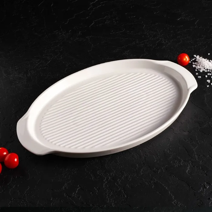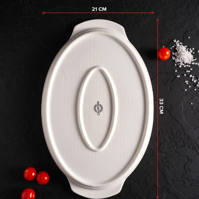 Блюдо фарфоровое для запекания Magistro «Бланш», 33×21×2,5 см, цвет белый — Характеристики
