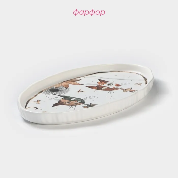 Блюдо фарфоровое овальное Доляна «Коты-аристократы», 30.5×17 см
