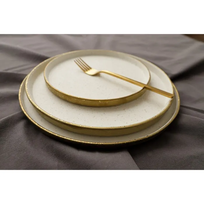 Посуда серии Magistro Poursephona — это современная фарфоровая посуда. В оформлении серии превалируют два цвета – бежевый оттенок фарфора и роскошное золото в виде широкой окантовки предметов. Идеально подходит как для формального обеда, так и для торжеств по особым случаям. Лаконичные формы, золотая окантовка, разноцветные вкрапления придают изделиям из фарфора одновременно необычный и современный вид.