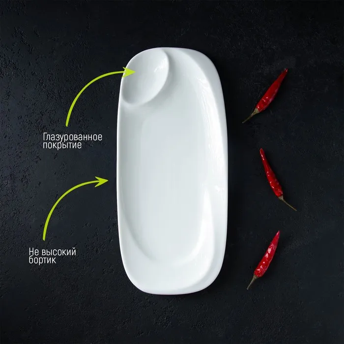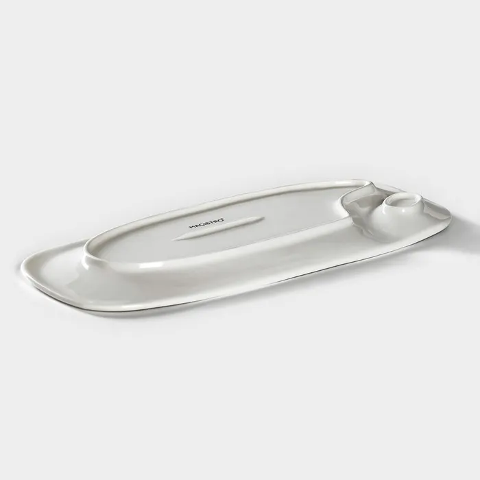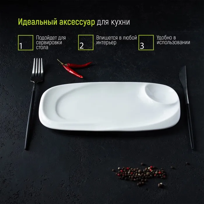 Блюдо фарфоровое с соусником Magistro «Бланш», 28×12.5 см, белое — Характеристики