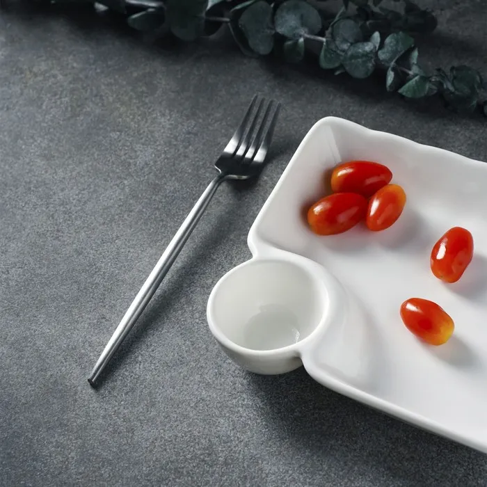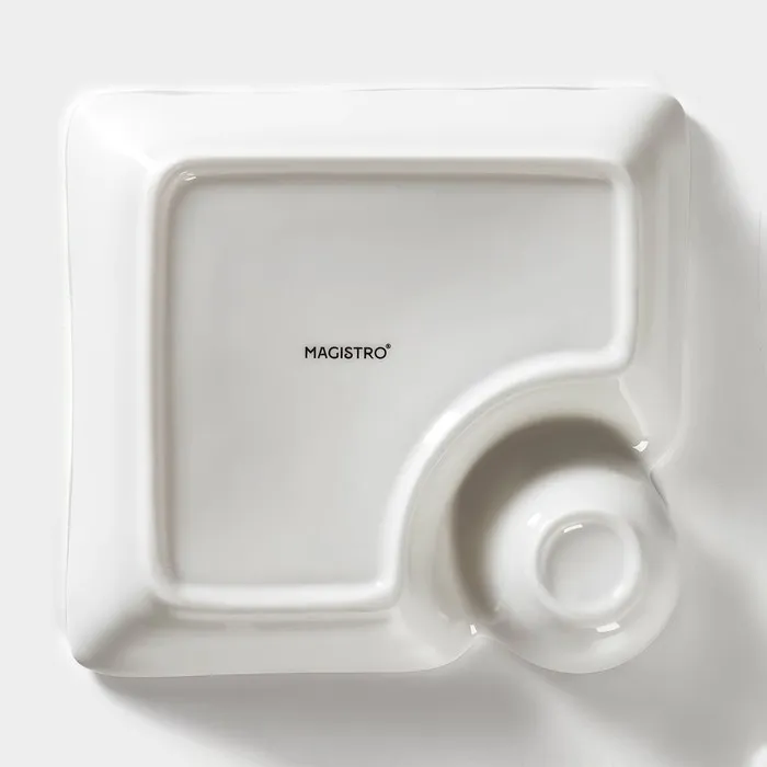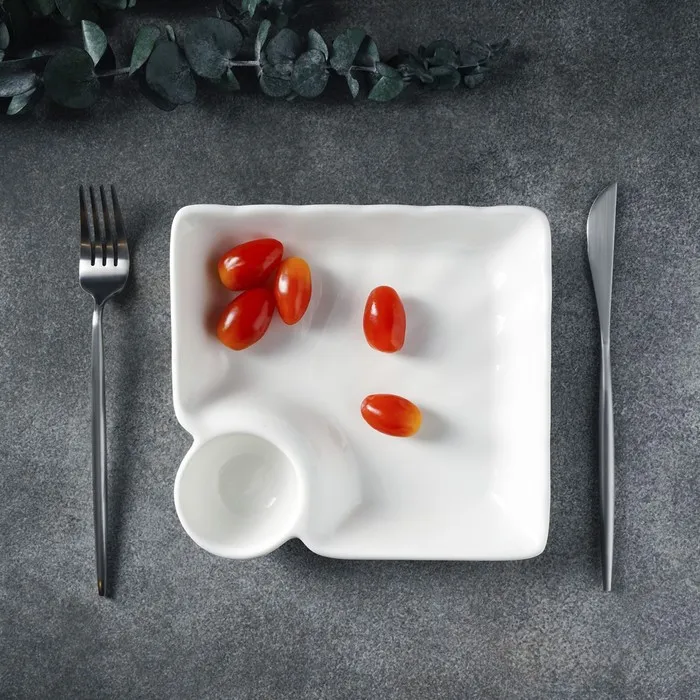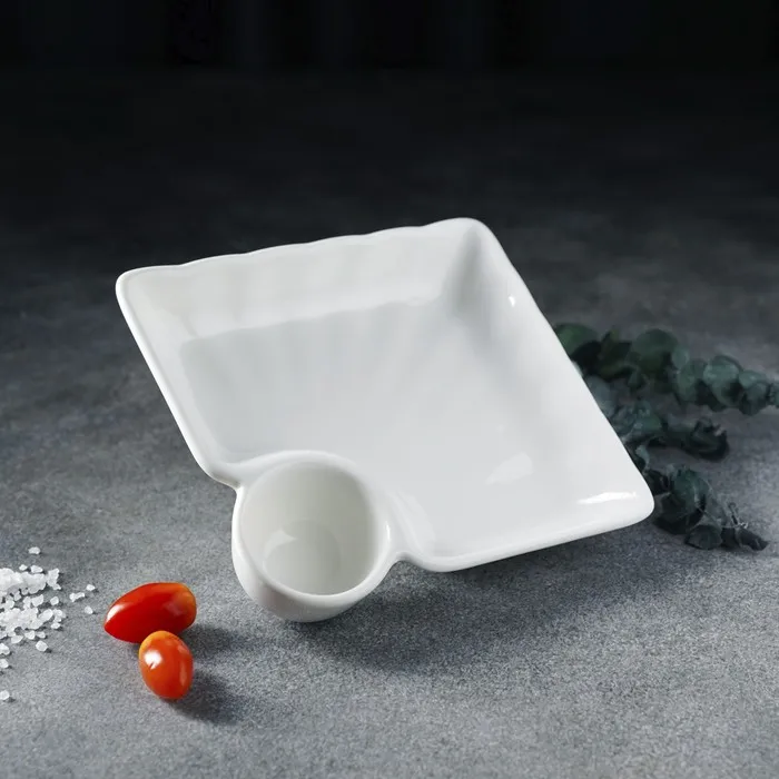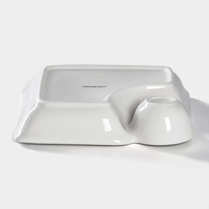 Блюдо фарфоровое с соусником Magistro «Бланш», соусник 60 мл, 18.5×17.5×4 см, белое — Характеристики
