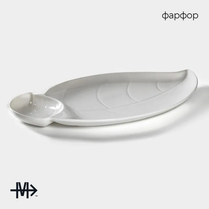 Блюдо фарфоровое с соусником Magistro «Лист Бланш», 33.5×20 см, белое
