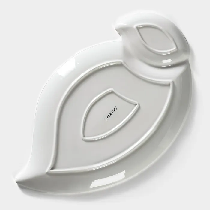 Блюдо фарфоровое с соусником Magistro «Лист Бланш», 33.5×20 см, белое — Характеристики