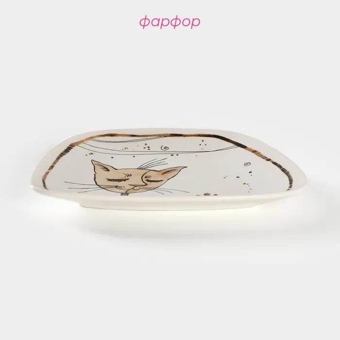 Блюдо фарфоровое сервировочное Доляна «Коты-аристократы», 16×13.5 см — Характеристики