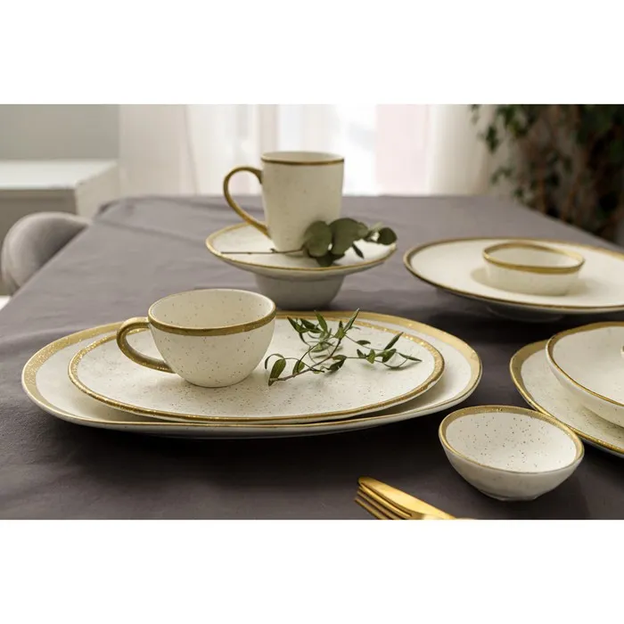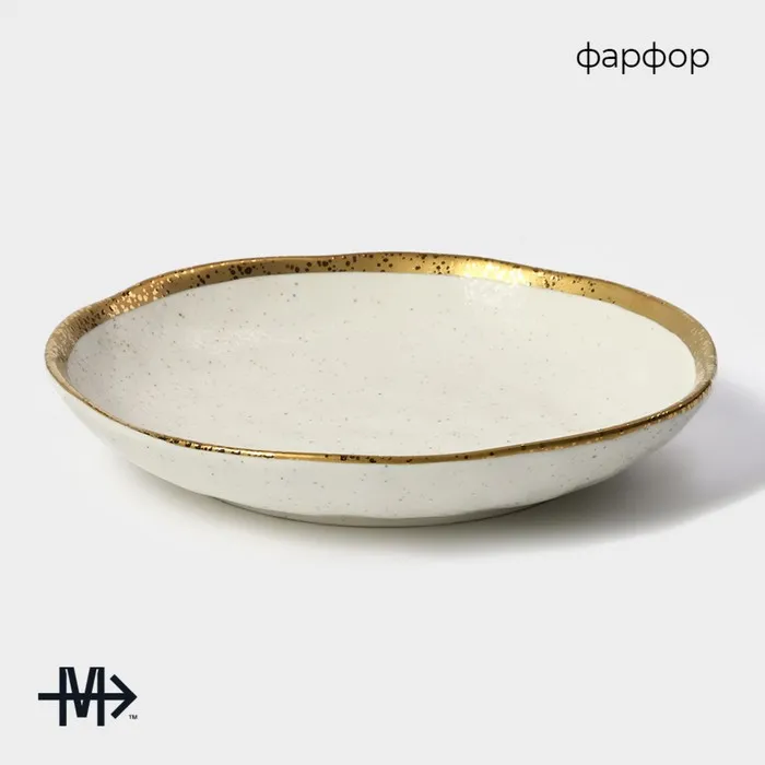 Посуда серии Magistro Poursephona — это современная фарфоровая посуда. В оформлении серии превалируют два цвета – бежевый оттенок фарфора и роскошное золото в виде широкой окантовки предметов. Идеально подходит как для формального обеда, так и для торжеств по особым случаям. Лаконичные формы, золотая окантовка, разноцветные вкрапления придают изделиям из фарфора одновременно необычный и современный вид.