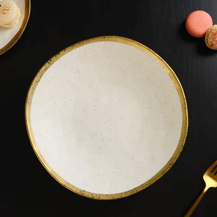 Посуда серии Magistro Poursephona — это современная фарфоровая посуда. В оформлении серии превалируют два цвета – бежевый оттенок фарфора и роскошное золото в виде широкой окантовки предметов. Идеально подходит как для формального обеда, так и для торжеств по особым случаям. Лаконичные формы, золотая окантовка, разноцветные вкрапления придают изделиям из фарфора одновременно необычный и современный вид.