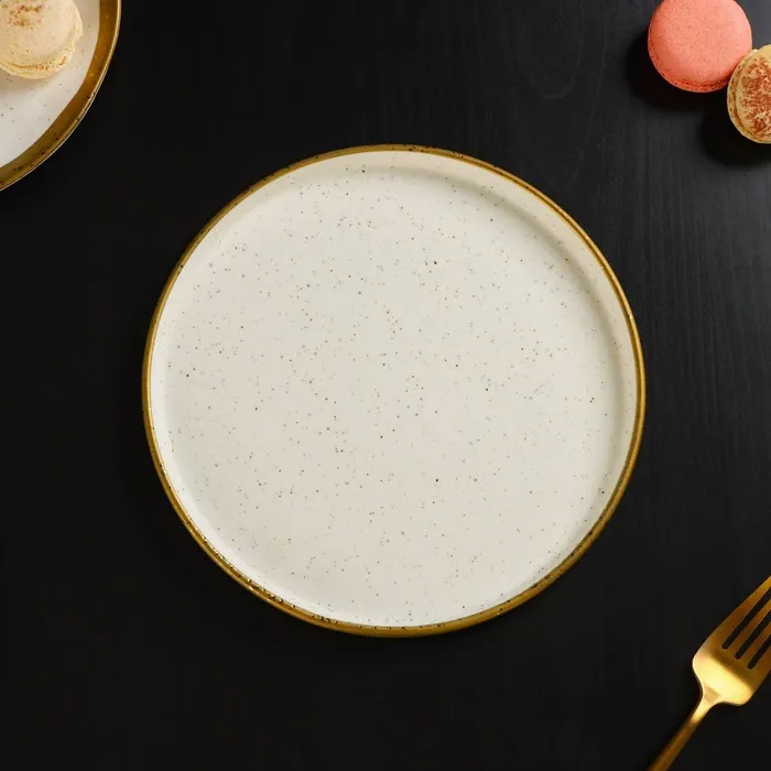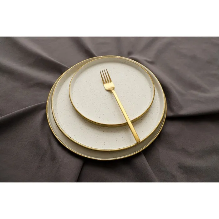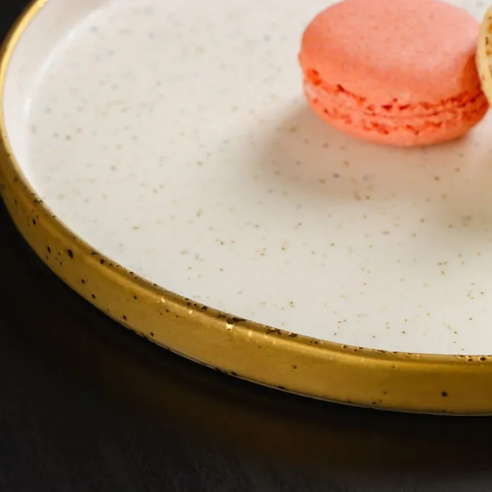 Посуда серии Magistro Poursephona — это современная фарфоровая посуда. В оформлении серии превалируют два цвета – бежевый оттенок фарфора и роскошное золото в виде широкой окантовки предметов. Идеально подходит как для формального обеда, так и для торжеств по особым случаям. Лаконичные формы, золотая окантовка, разноцветные вкрапления придают изделиям из фарфора одновременно необычный и современный вид.