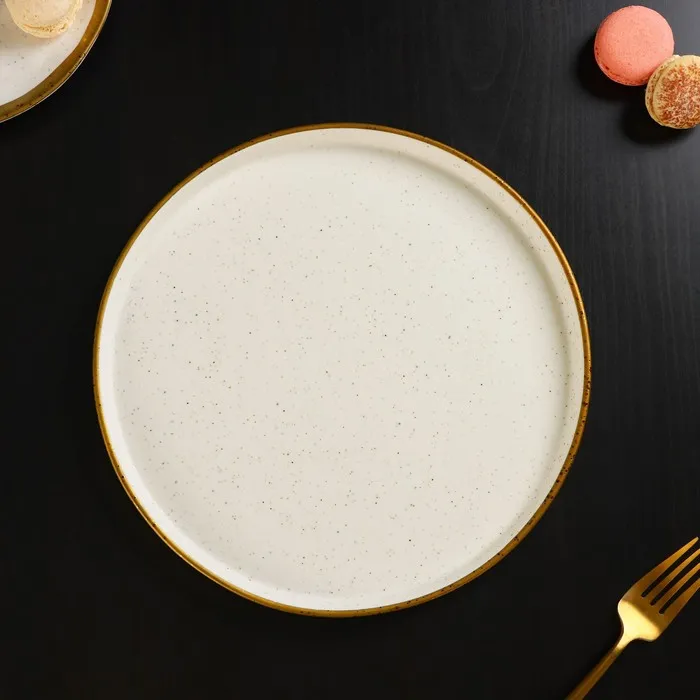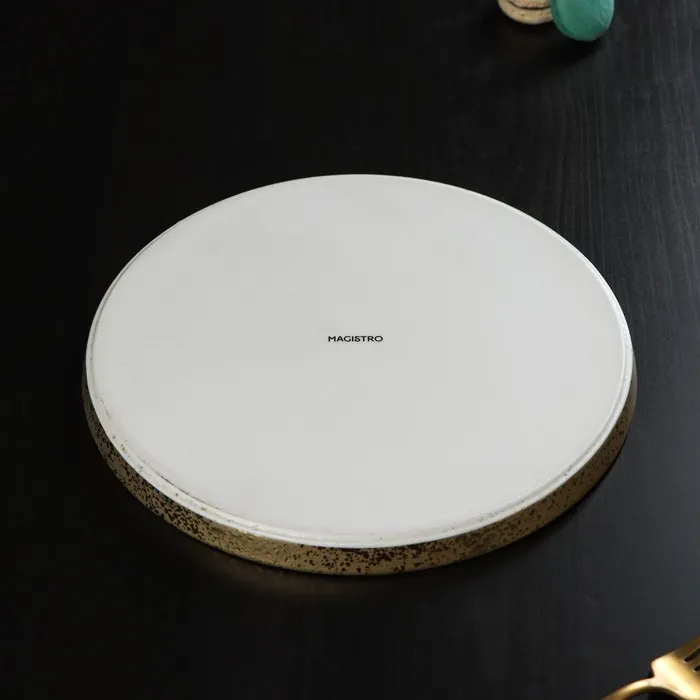 Блюдо фарфоровое сервировочное с бортиком Magistro Poursephona, d=25.5 см, бежевый — Характеристики