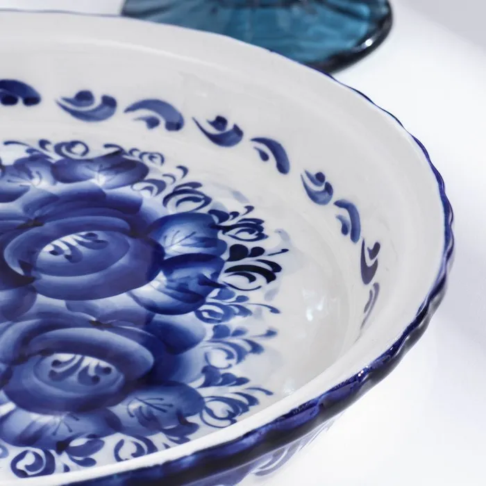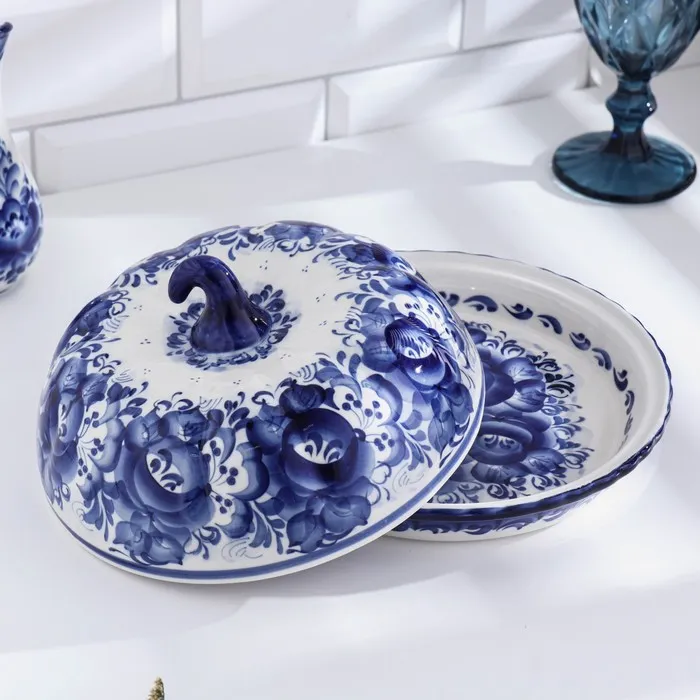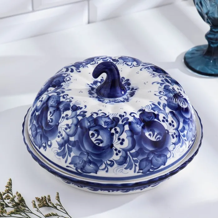 Блюдо гжель «Блинница Тыква», бело-синий,керамика, — Характеристики