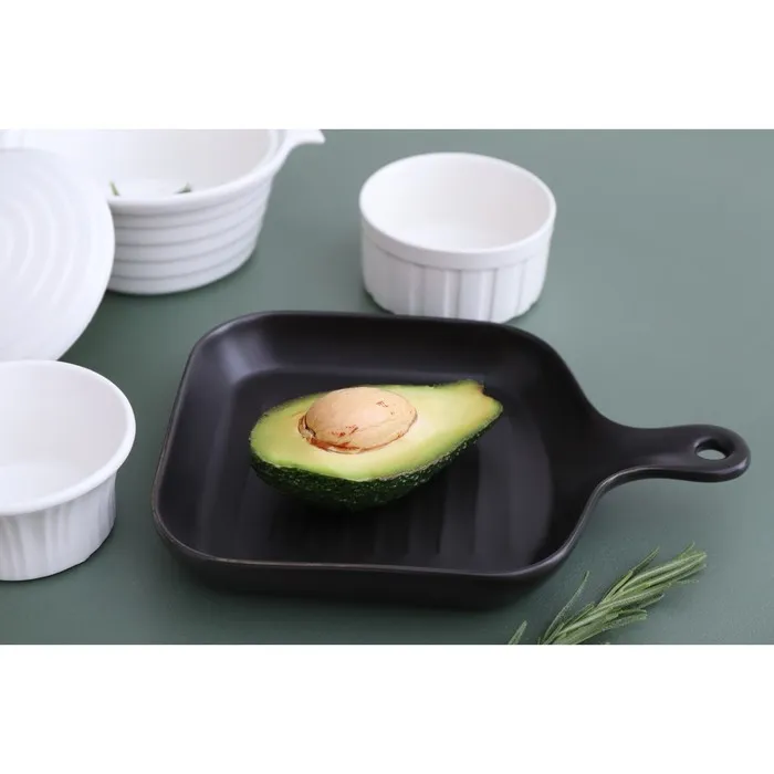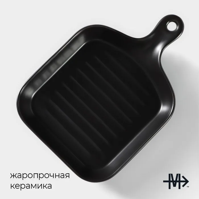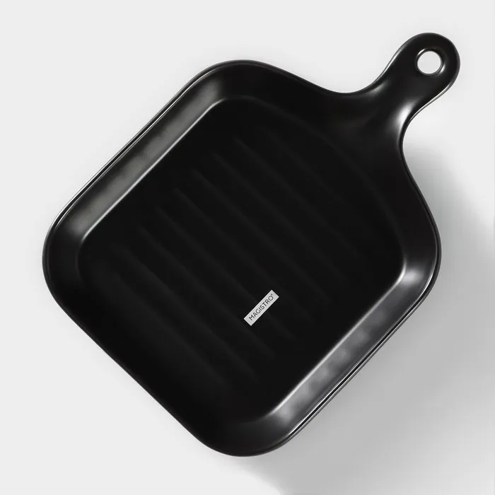 Блюдо из для подачи Magistro «Сковорода-гриль», 23×16×3 см, жаропрочная керамика, чёрное — Характеристики