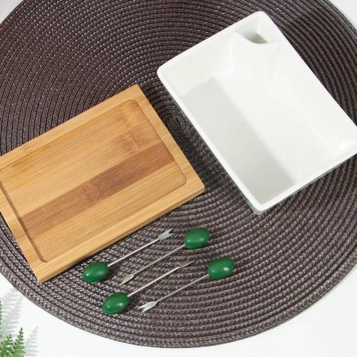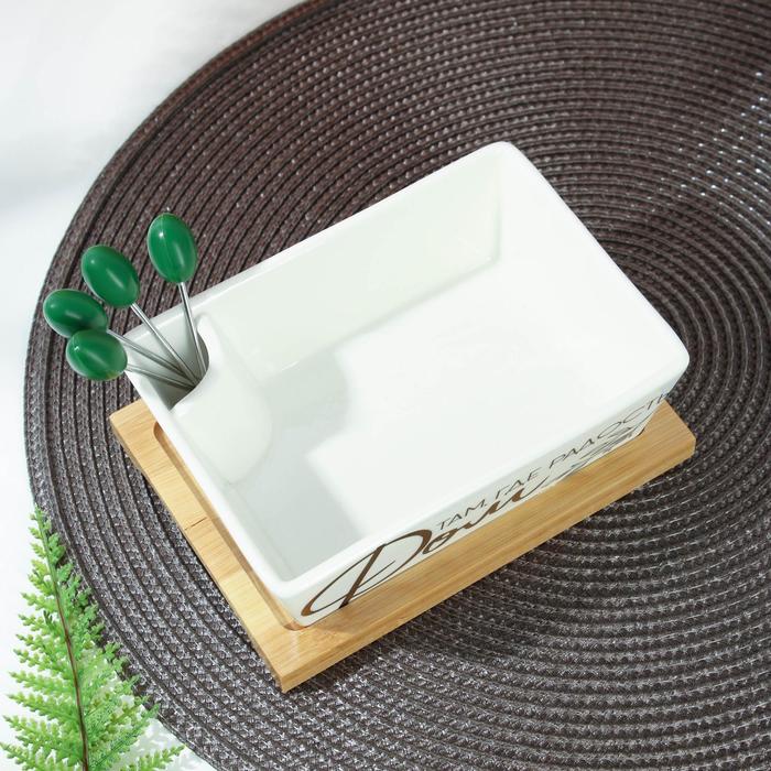 Блюдо из керамики на деревянной подставке «Дом там, где радость», 15,5 х 11,3 см, цвет белый — Характеристики