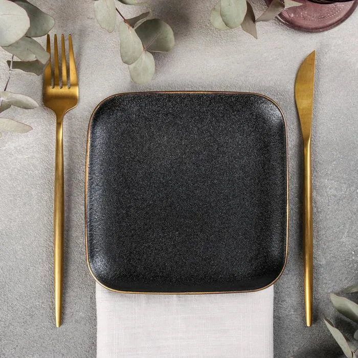 Блюдо керамическое квадратное «Золотая нить», 15×15 см