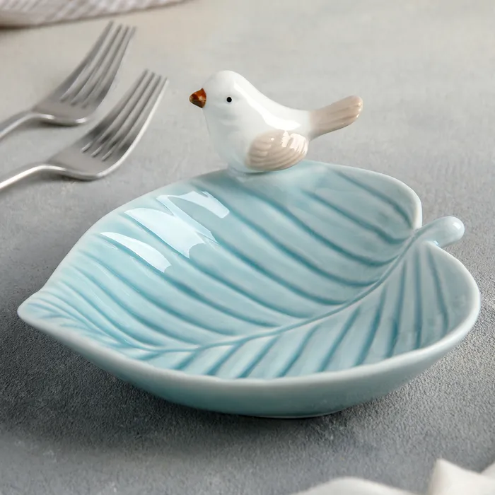 Блюдо керамическое «Птичка на листочке», 15,5×15,5 см, цвет голубой — Характеристики