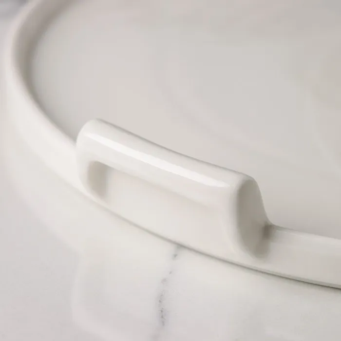 Подставка изготовлена из усиленной керамики, что придает изделию ударопрочность и износостойкость. Изделие имеет высокие бортики, что позволяет плотно фиксировать крышку и даже в случае наклона, она не соскользнёт и не испортит красивую выкладку.