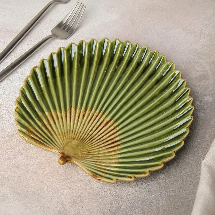 Блюдо керамическое сервировочное «Дендрарий», 19.5×19×2 см, зелёное