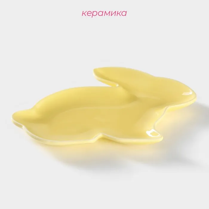 Блюдо керамическое сервировочное Доляна «Милашки. Зайка», 17,8×12,8×1,5 см, цвет жёлтый — Характеристики