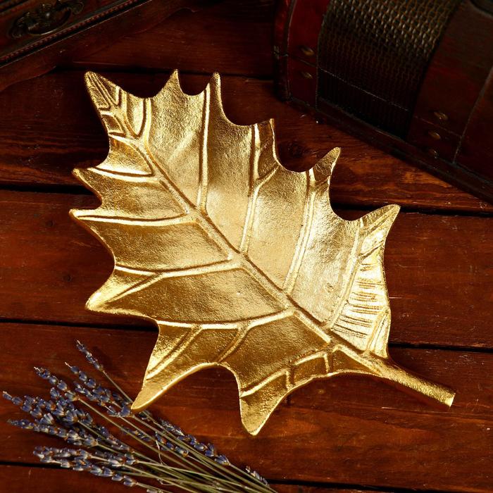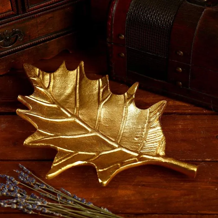 Стильная алюминиевая тарелка «Лепесток» станет изысканным дополнением к сервировке стола. Её золотистый оттенок и рельефная текстура создают эффект изысканности, подчёркивая индивидуальность вашего интерьера. Плоская форма и необычный дизайн в виде листа дерева делают её универсальным аксессуаром для подачи закусок, десертов или украшения пространства.