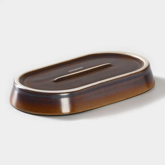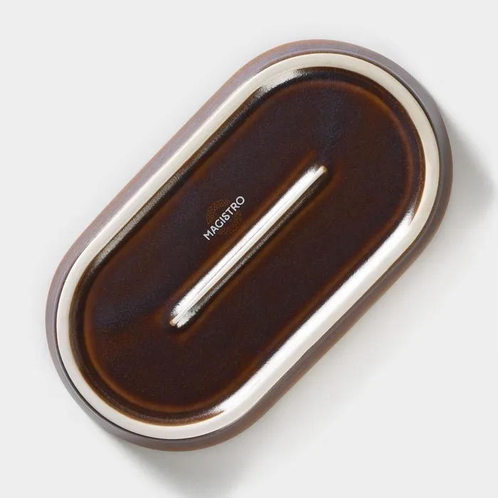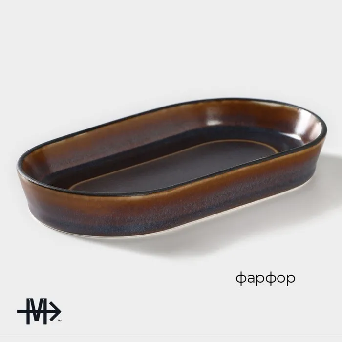 Блюдо Magistro Garland, 18×9.8×2.5 см, овальное, фарфор, синее, коричневое — Характеристики