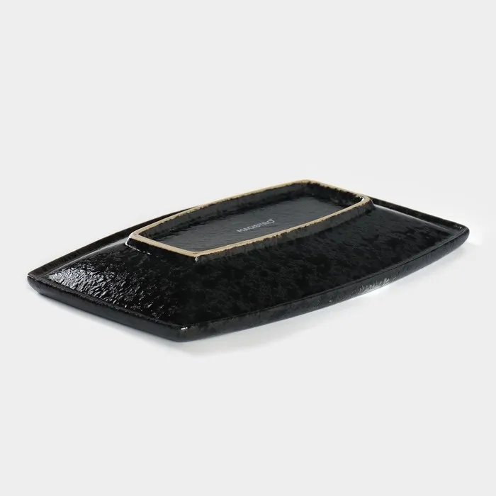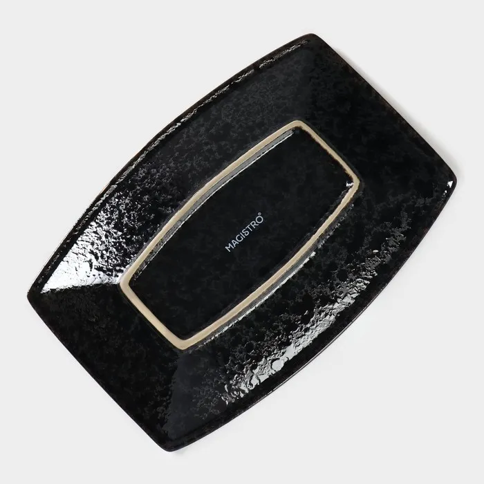 Блюдо Magistro «Ночной дождь», 21×14×3 см, фарфор, чёрное