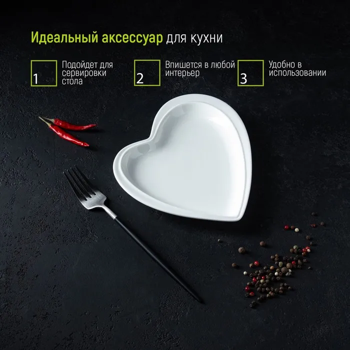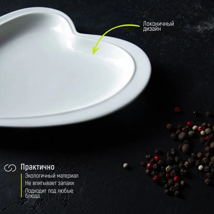 Блюдо Magistro «Сердце Бланш», 17.5×20×3 см, фарфор, белое — Характеристики