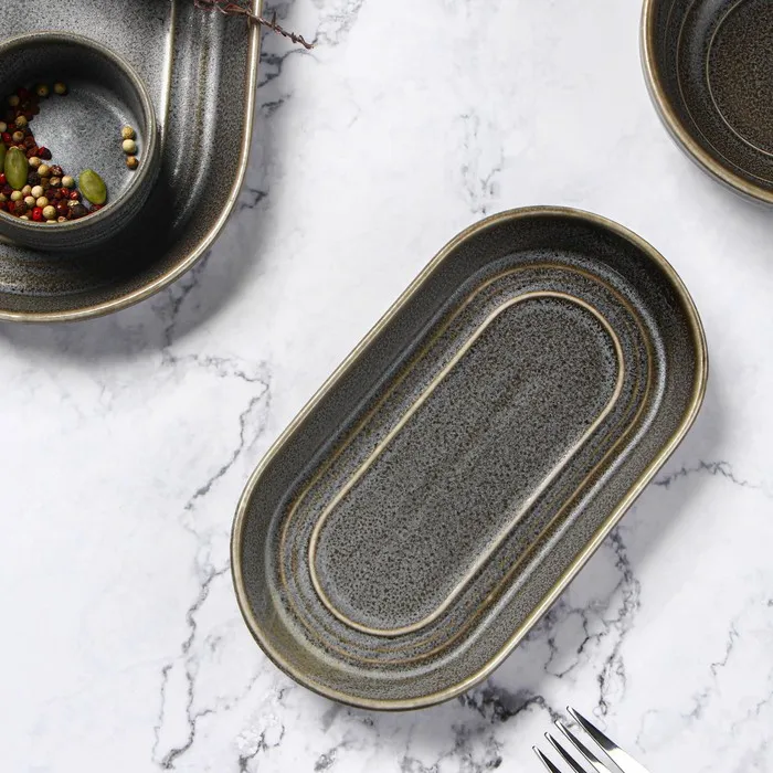 Блюдо Magistro Urban, 260 мл, 18×9.8×2.5 см, овальное, фарфор, серый — Характеристики