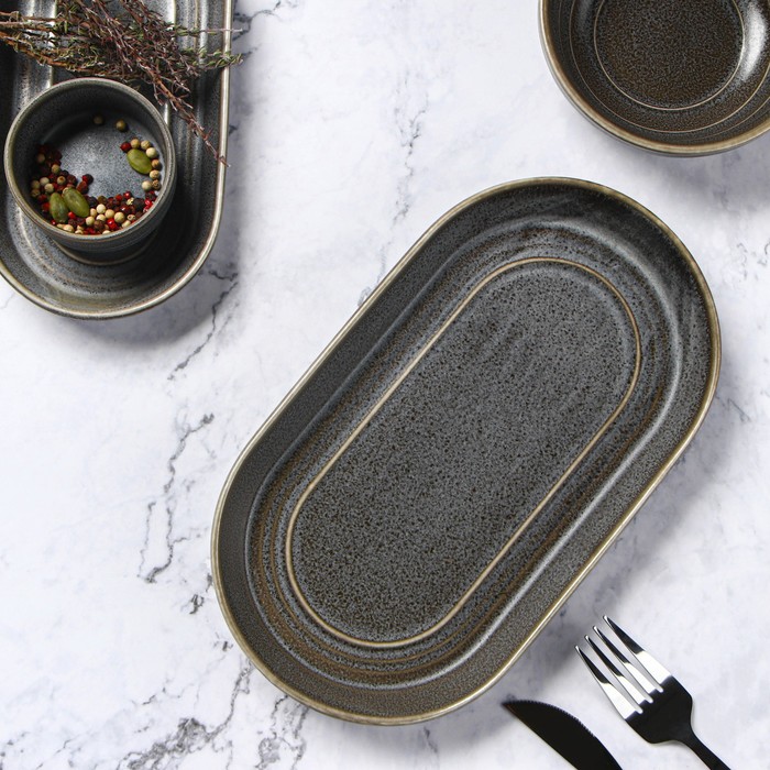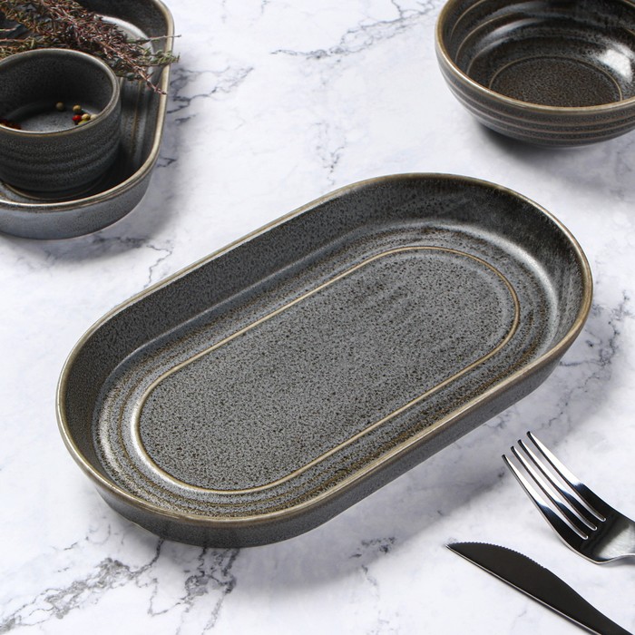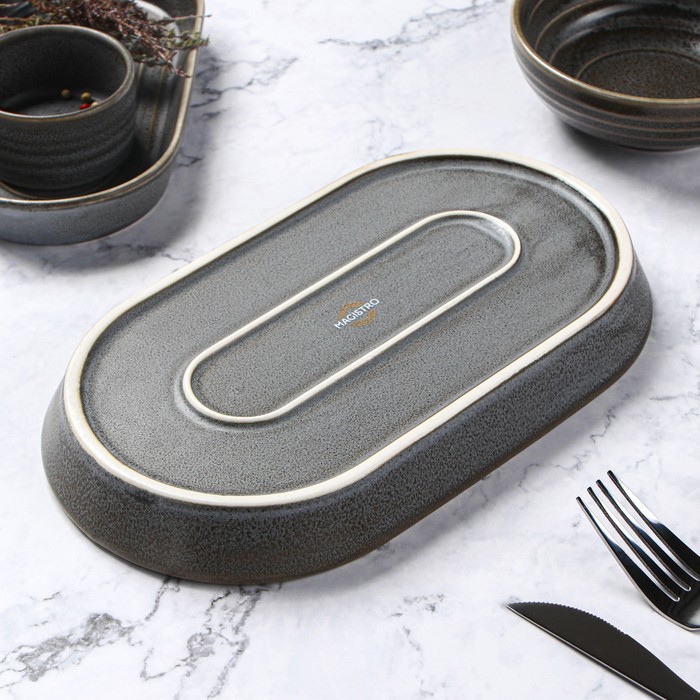 Блюдо Magistro Urban, 450 мл, 24×13.7×2.7 см, овальное, фарфор, серое — Характеристики
