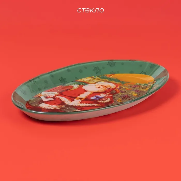 Блюдо новогоднее овальное Доляна «Счастливый Санта», 24.5×15.5 см, стекло — Характеристики