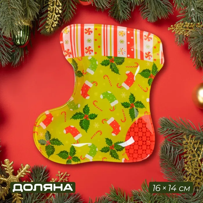 Блюдо новогоднее сервировочное Доляна «Бант. Совиное тепло», 19×14 см, стекло — Характеристики