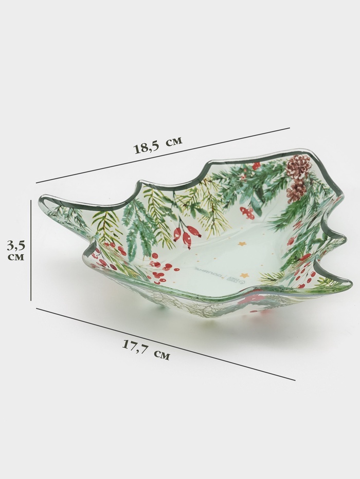 Блюдо новогоднее сервировочное Доляна «Еловые ветки», 17.7×18.5×3.5 см, стекло, белое, зелёное — Характеристики