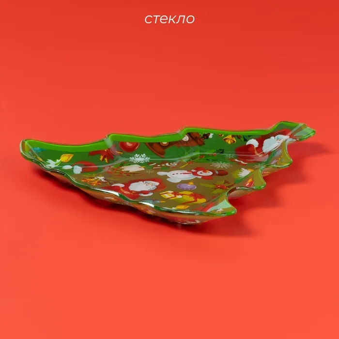 Блюдо новогоднее сервировочное Доляна «Ёлочка. Праздник к нам приходит», 24,5×24,7×2 см, стекло — Характеристики
